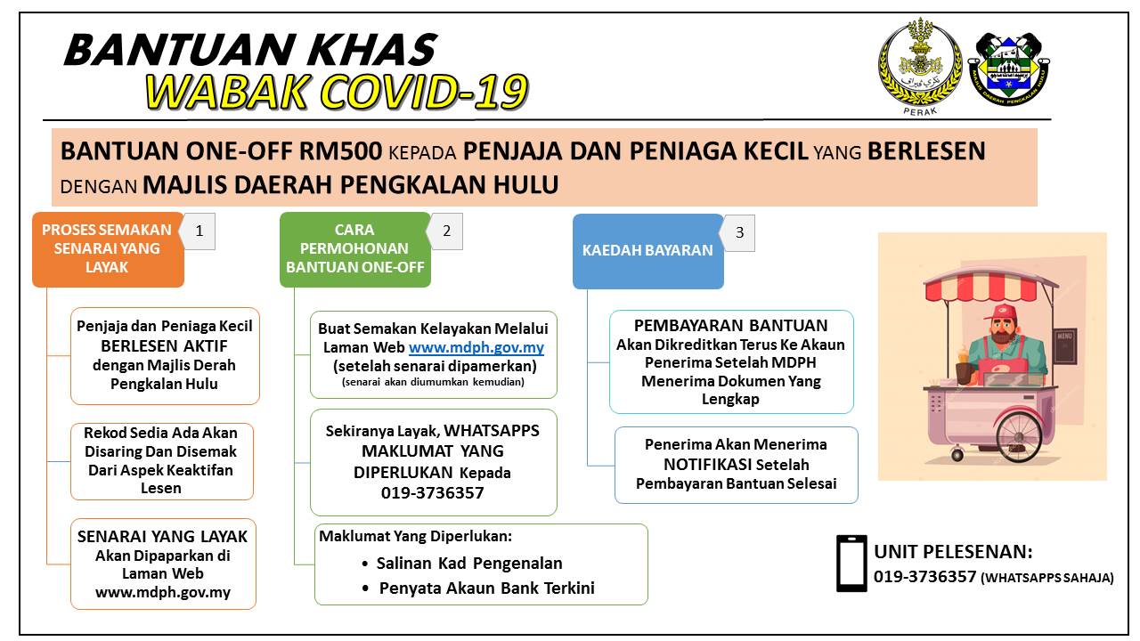 Pemohon adalah semua penjaja dan peniaga kecil termasuk Peniaga Pasar Awam yang berlesen di bawah Majlis Bandaraya Ipoh. Permohonan Bantuan Peniaga Kecil. Seperti dalam pengumuman khas Pakej Perlindungan Rakyat dan Pemulihan Ekonomi PEMULIH sebelum ini pihak kerajaan bersetuju untuk menyediakan bayaran tambahan di bawah Geran Khas Prihatin GKP 40 kepada penerima yang layak sebanyak RM500 yang akan diberikan pada September 2021 dan.